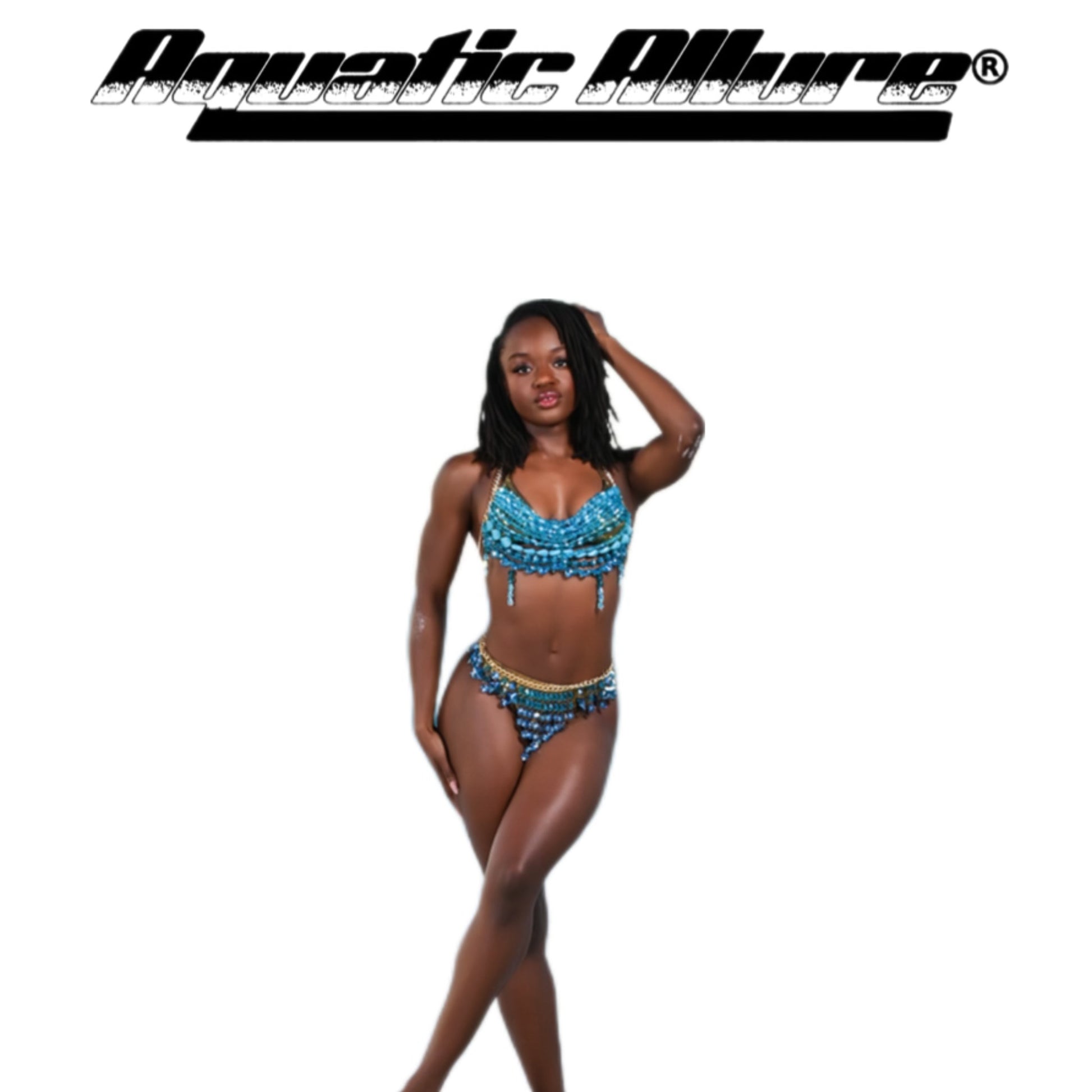 Glass beaded bralette and belt. using clear crystals. Made to order.
